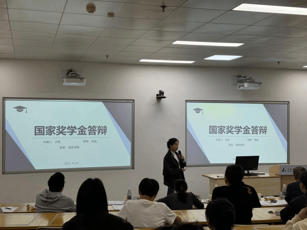 (文|孙艺萱、王郅巍 图|王郅巍 审核|苗壮)2023年10月20日, 2023年麻豆 研究生国家奖学金答辩评选会在第一综合楼A座102会议室举行。本次评选会由苗壮老师主持,邀请学院党委副书记刘进及龚静、董旺远、王玉龙、刘建晓、牛晓辉、程心瑛、苗壮等老师出席并担任评委,此外,现场还有17位学生代表参与评审。