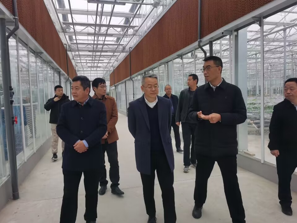 在三官殿街道办事处,廖济忠一行参观了丹江口数字设施农业科技示范园。该示范园将智慧化管控和无土栽培等技术应用于农业生产,促进农业提质增效,帮助农民增收致富,赋能乡村振兴,是当地从传统农业向高效农业转型的典范。园区负责人带领大家参观了A+温室工厂、薄膜连栋温室、薄膜单棚、露天蔬菜大田和市民菜园五大功能区,并就示范园的智慧化管控技术、优质种苗的引育等方面提出需求,双方开展了工作对接。