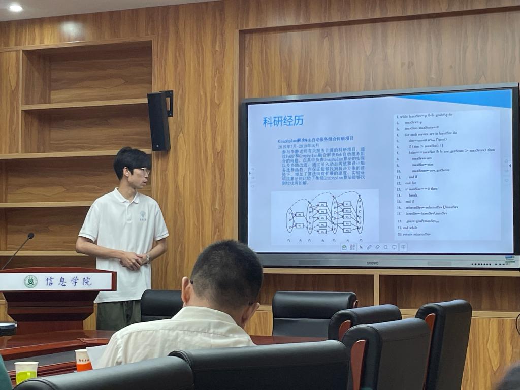 经过前一天学术讲座,营员们陆续开始风采展示。大学期间努力获得的各种证书,优异的成绩排名,丰富的科研经历,还有对未来充满希望的展望,都焕发着他们青春的活力和自信的风采。经过上午的风采展示和下午的英语面试,师生们进一步增进相互了解,大家也尽情畅谈起来。