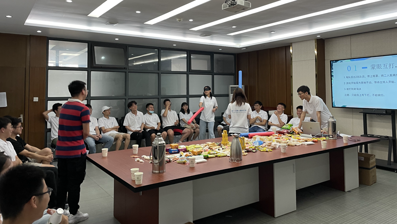 “砰,砰,砰…”随着一阵阵此起彼伏的敲击声,破冰活动为本次夏令营拉开序幕。破冰活动分为3个环节,在蒙眼互打环节中大家“短兵相接”,所谓不打不相识,同学们使用泡沫棒互致热情“问候”;在抢名字报数环节中大家脑洞大开,绞尽脑汁想出各种有趣的名字,比拼记忆力和反应力,一时间会议桌上“火花四溅”;最后解手链环节,各小组齐心协力、默契配合、“各显神通”,最终都解开了复杂重重的手链难题。“虽然最后输掉了游戏,但我们组每个人都玩的特别开心,这次活动设计的游戏都非常有意思,大家相互之间也熟悉了不少。”张天予同学有点意犹未尽。