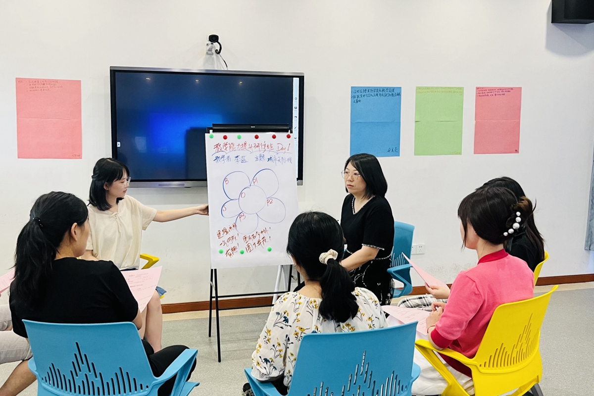 为了进一步加强研究生学员的基本功,工作坊开展为期两天的微格教学实操演练。由本校具备教学技能工作坊引导资质的教师担任引导员,章英、胡素芬、王运、曹敏惠4位老师通过主题学习环节,对BOPPPS模式进行解读,BOPPPS教学设计将课堂教学过程划分为6个阶段:导入(Bridge-in)、目标(Objective)、前测(Pre-assessment)、参与式学习(Participatory Learning)、后测(Post-assessment)和总结(Summary),并深入讲解了参与式学习和课程思政。每位学员需要按照BOPPPS模式设计教授10分钟微课,同组其他学员在指导教师的组织引导下给授课学员反馈学习体验并提出具体的改进建议;所有学员需要根据第一轮反馈修改完善自己的教学设计,再次讲授10分钟微课,并收集同组其他学员的进一步反馈和建议。两轮微格教学结束后,各小组进行活动总结,讨论反思如何在日常课程教学中灵活运用BOPPPS教学模式,落实“以学生发展为中心”的教学理念。