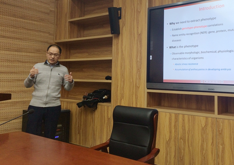 武汉理工大学袁晓辉博士向我们介绍了他们团队开发的表型抽取方法以及该方法的基本流程,接着着重介绍了该方法中他们团队提出的负类标签增强算法(NCLE),最后展示了该方法在实际使用中的优秀表现。参加报告会的师生围绕袁老师的研究展开了热烈的讨论。