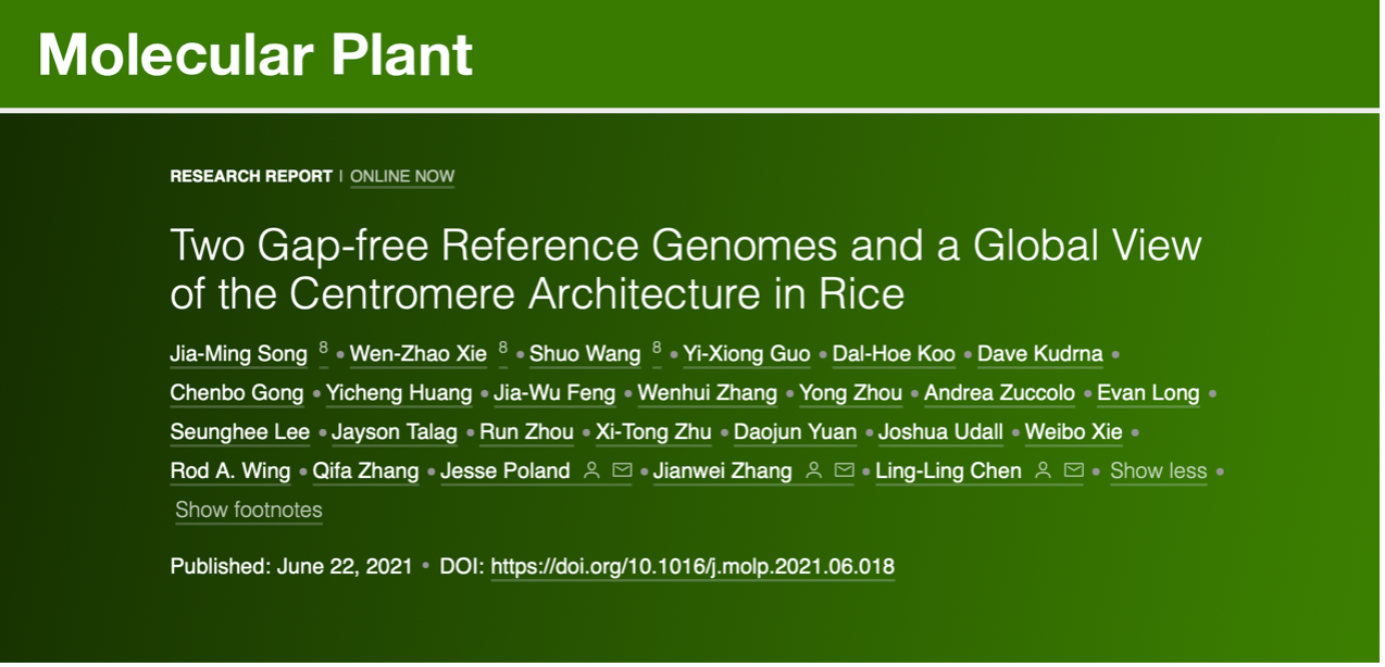 水稻是全世界主要主食之一,也是植物基因组学和育种的模型系统,是近20年前第一个测定基因组的作物。然而,迄今为止所有正式发表的高等生物参考基因组都包含缺口/缺失序列,麻豆 水稻团队早在2020年底率先在BioRxiv(//www.biorxiv.org/content/10.1101/2020.12.24.424073v2) 预印公布了两个籼稻的无缺口参考基因组序列,填补了全球基因组学领域空白。此次正式见刊报道的成果是植物中首例无缺口参考基因组,不仅为全面解析水稻着丝粒的结构和功能提供机会,促进了解植物的基因组结构和功能,而且对利用基因组育种手段培育21世纪农业气候适应性品种具有长期和持久影响。