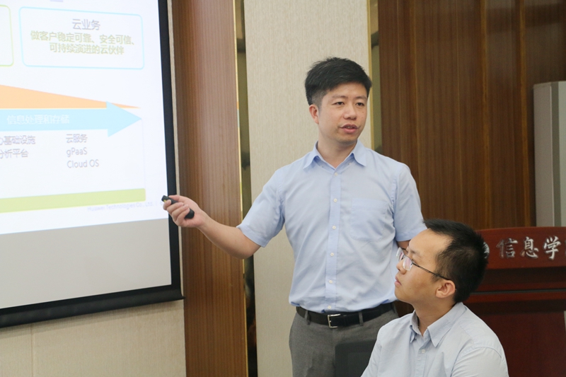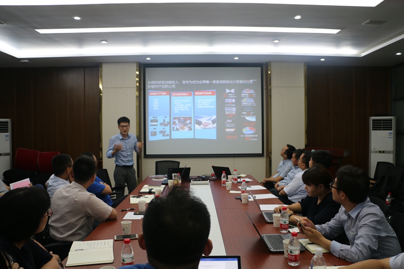 我院院长张红雨教授在C314会议室热情接待了华为公司负责人一行。张院长详细介绍了学院发展理念、发展愿景、价值追求、师资团队、科研成果等方面情况,他表示,融入产业体系、加入国际循环是学院的发展理念,希望并相信和华为的合作能够开创校企、院企合作的新局面。华为公司负责人先后专题介绍了公司在超算平台、云计算服务、和相关高校教育产业合作的典型案例等内容。随后,与会领导专家就院校合作、平台建设等具体内容进行了深度交流,并达成了继续合作意向。在张院长的陪同下,华为公司访问团参观了学院办公区、实验室、科研平台等处。