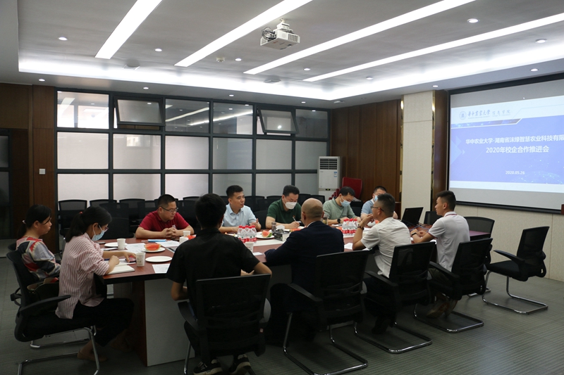 (图文|辛西)5月26日上午,湖南省沫绿智慧农业科技有限公司董事长任海平一行4人来学院推进校企深度合作。