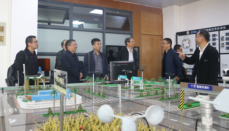 在张红雨、李国亮陪同下,与会嘉宾参观了学院实验办公区和虚拟仿真实验室。