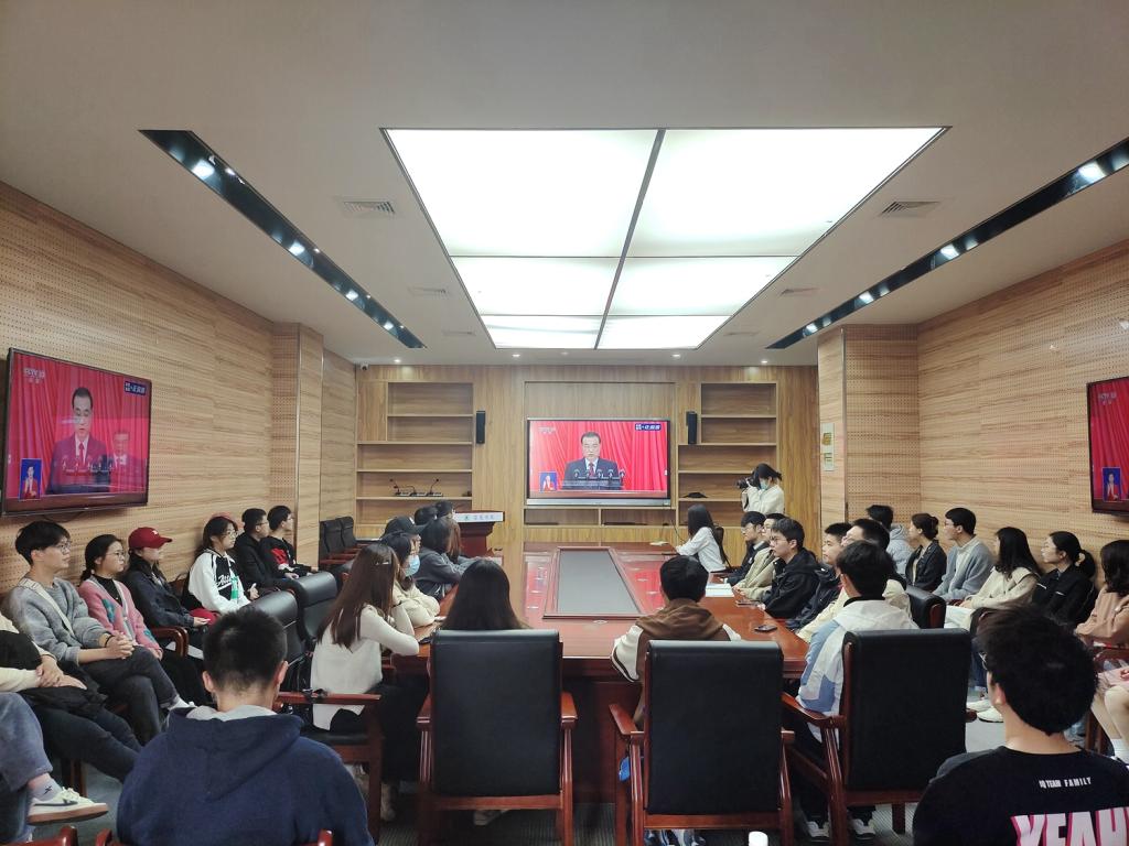 我院学生党员、学生骨干代表在C603会议室观看直播