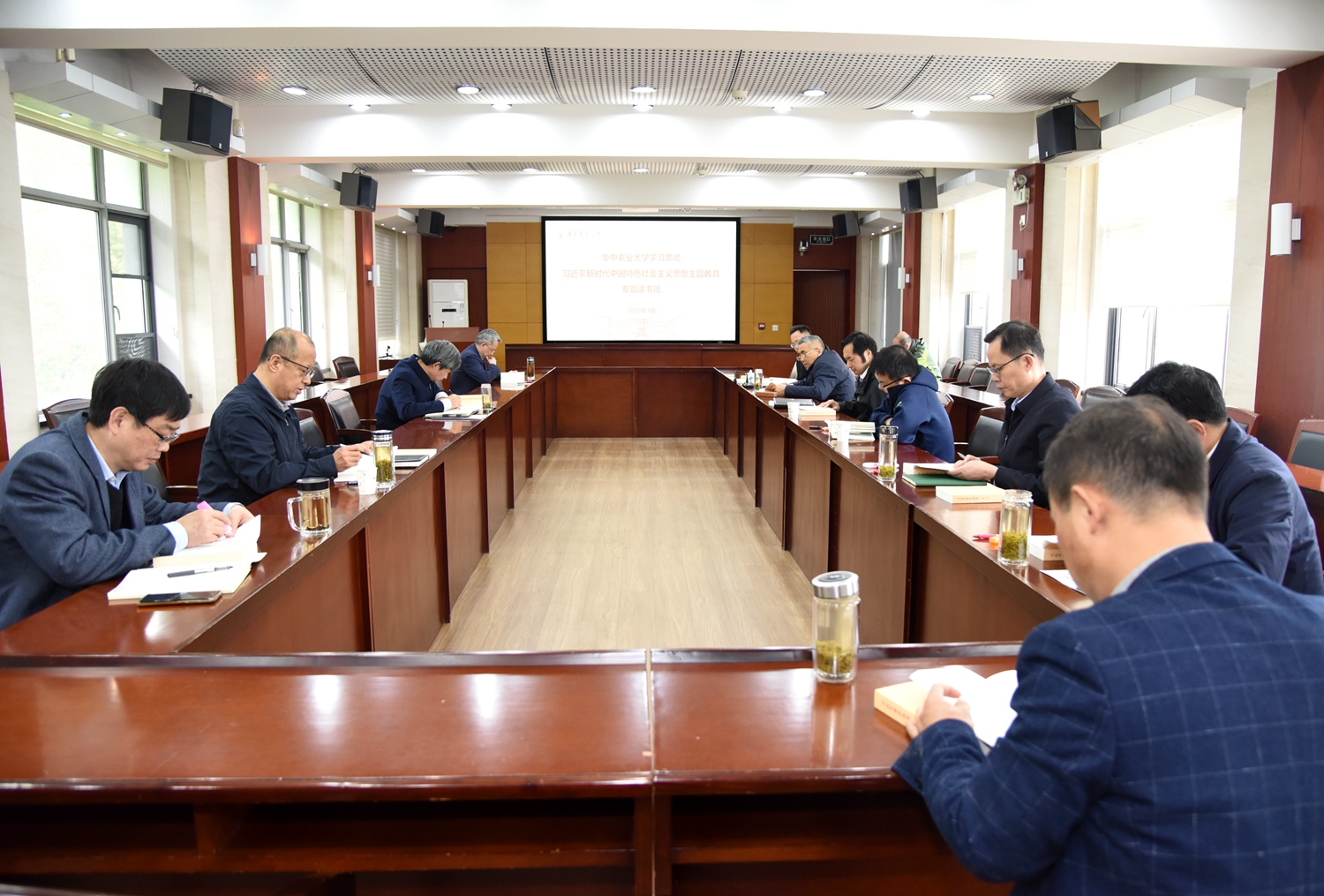 “默读”“静读”“深阅读”“集中读”“潜心自学”是这次专题读书班的重要特点。从4月24日到28日,校党政领导班子全体成员集中在行政楼5楼会议室开展学习。惠风和畅、馥郁书香,正是读书好时节,南湖新闻网记者看到,校党政领导班子成员埋头静读、全神贯注、一丝不苟,他们不时作下读书笔记,氛围浓醇。