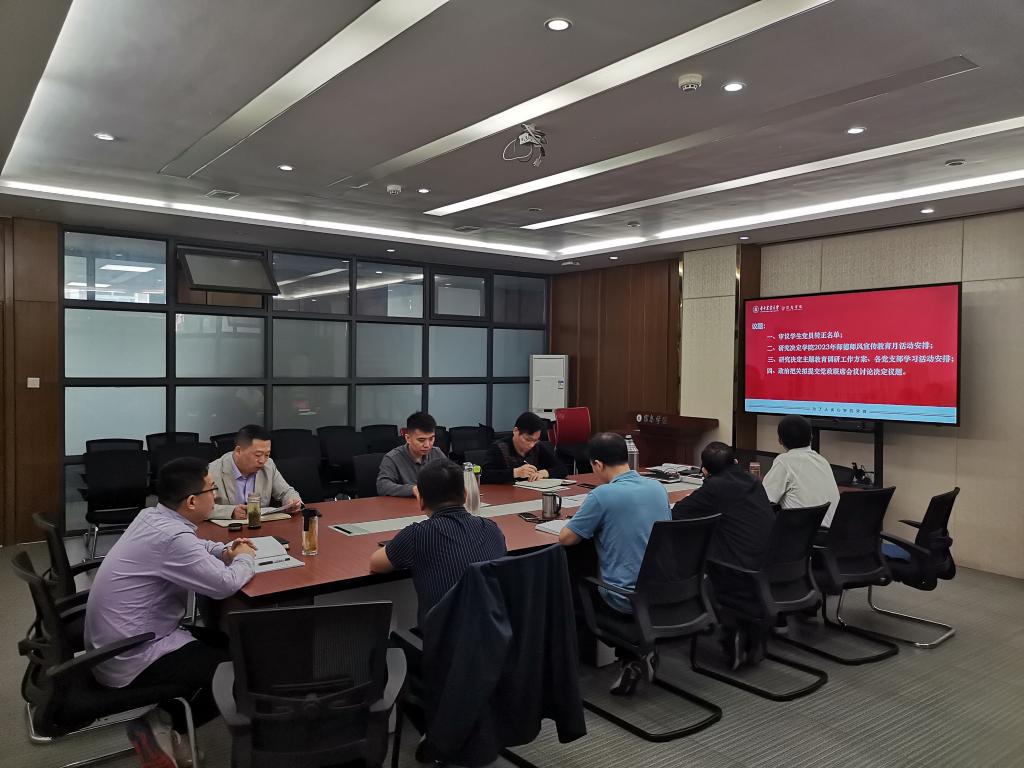 会议现场审议通过学生党员转正名单;研究决定了学院2023年师德师风宣传教育月活动安排,要求高度重视师德师风建设,从7个方面扎实推进师德师风宣教月相关工作,注意做好结合,务求工作实效;研究决定了学院主题教育调研工作方案以及各党支部学习活动安排。强调持续深入推进主题教育走深走实,加强党员教师理论武装全覆盖,支部书记带头学习带头宣讲,迅速掀起主题教育学习热潮,保质保量完成各项规定动作、自选动作,以学习的质效促进专业学科、人才培养又好又快发展;会议对拟提交党政联席会议讨论决定议题进行了政治把关。