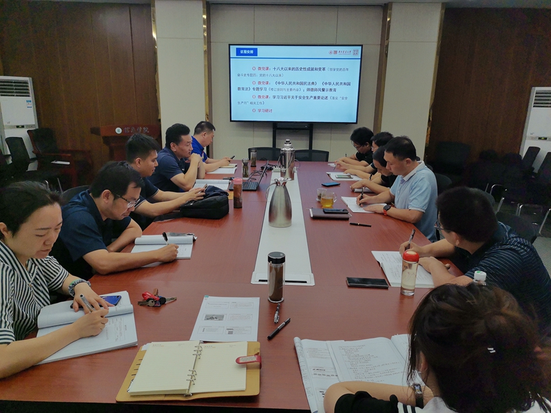 (图文|辛西 审核人|刘进)6月23日下午,逸夫楼C314会议室,学院召开党委理论学习中心组扩大会议,进行专题研学。学院党政领导、党委委员、各教工支部书记,行政支部全体同志参加会议。会上,进行了“新时代、新思想,新目标,新征程”微党课学习,学院党委副书记刘进同志了领学《十八大以来的历史性成就和变革》;进行了微党课:《中华人民共和国民法典》《中华人民共和国教育法》专题学习(修订原则与主要内容),学院党委书记明庭庆同志领学,并进行了“十项准则”、师德师风警示案例宣讲;副院长徐勋光同志领学了他学习习近平关于安全生产重要论述的体会,部署了“安全生产月”相关工作。随后进行了交流研讨,张红雨、徐勋光、高鹏淇、李晓、陈治国等分享了学习心得,明庭庆最后作了总结强调。