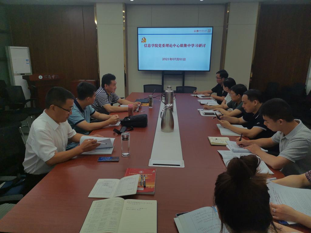 (图文|辛西 审核人|刘进)7月1日下午3时,学院党委理论学习中心组在C314会议室专题学习习近平总书记在庆祝中国共产党成立100周年大会上的重要讲话精神、习近平总书记在“七一勋章”颁授仪式和中共中央政治局第31次集体学习上重要讲话精神。学院党委理论学习中心组成员围绕主题开展深入学习研讨、分享学习体会,学院党委书记明庭庆同志主持会议,并做了专题领学分享。随后,与会同志进行了深入研讨交流。行政支部全体同志参加会议并作了交流发言。