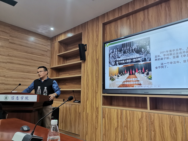 郑学刚主持会议。马克思主义学院吴德凯老师以“坚定理想信念,勇担时代使命”为题,从“引言”“十九届六中全会概况”“十九届六中全会精神解读”“结语”等4方面作了六中全会精神专题辅导报告。郑学刚作了师德师风专题宣讲,解读了教育部通报了违反师德师风的典型案例。会上进行了技术英才岗位申报述职测评,夏宣炎老师作了申报汇报。会议还对疫情防控常态化、推进党史学习教育、推进“三全育人”与“五育融通”等近期工作进行了强调布置。