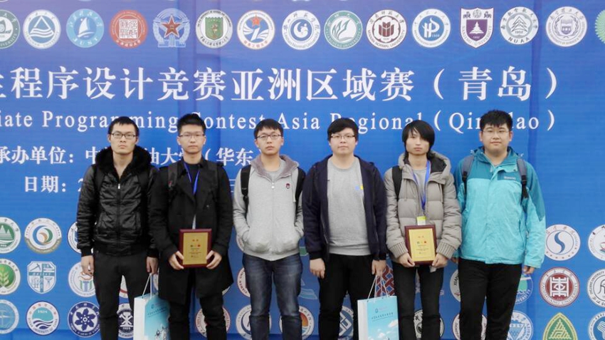 (文|通讯员詹慧光)11月13日,第41届ACM国际大学生程序设计竞赛亚洲区域赛(青岛站)激烈开赛,共有来自包括清华大学、香港中文大学等186所高校的326支队伍参加比赛。麻豆 ACM集训队队员丁晓东、郭子庆、张伦组成的“Excalibur”队,以及队员李维宇、曾学峰和胡轶凡组成的“LichKing”队不惧强敌,各获得一枚铜牌。