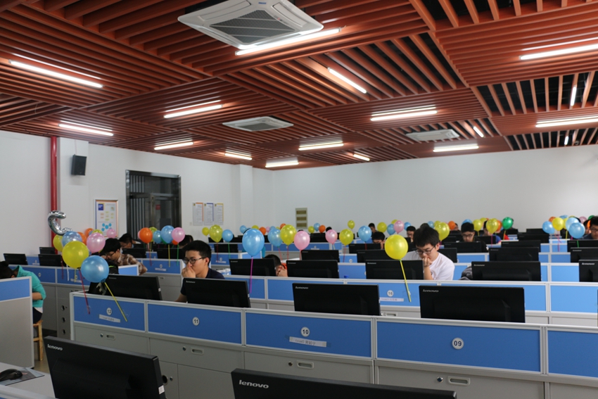 竞赛共有十道程序设计大题,每题难度梯度不同,遵循公平公正原则,选手每答完一题,会有计算机自行检测,无人为因素干扰,系统执行自动化检测。选手每答完一题,工作人员会为其插上气球,不同颜色的气球代表不同的题目“脑洞大开”,五彩缤纷的气球为紧张的比赛增添了活力,也激发了答题者的动力。