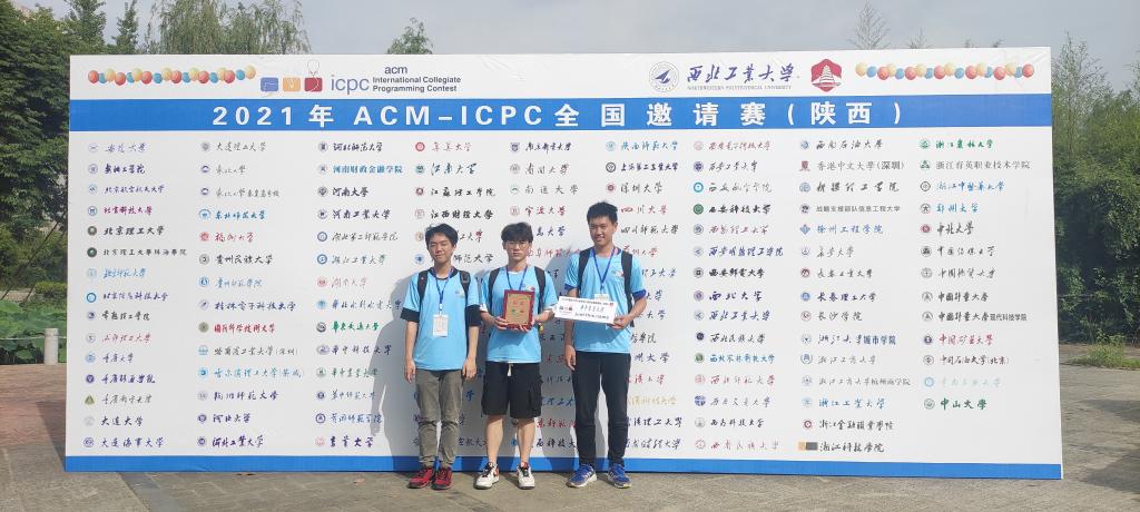 吴威明(中间),2019级计科专业,ACM团队学生负责人,哈尔滨工业大学读研,曾获铜奖
