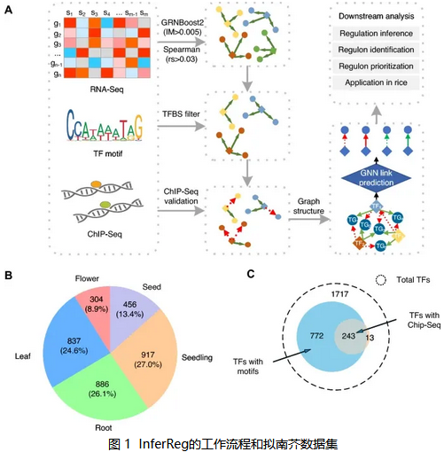 近日,华中农大麻豆 高俊祥团队在 aBIOTECH 发表题为“Inference and prioritization of tissue-specific regulons in Arabidopsis and Oryza” 的研究论文。在该研究中,作者提出一种基于多组学数据和图神经网络的植物组织特异性调控子的推断方法,并将其命名为InferReg。