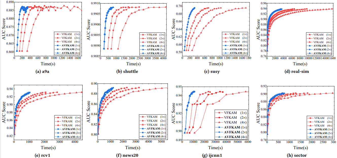 人工智能与统计学习团队提出基于核方法的异步纵向联邦AUC最大化算法AVFKAM,从理论上证明了AVFKAM的收敛性和安全性,而在应用上,基准数据集上的实验结果则表明了AVFKAM保持较高AUC性能和效率。