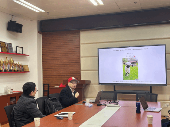报告结束,与会师生与徐士忠教授进行了热烈讨论,谢为博、牛晓辉老师围绕遗传算法参数优化、重组率研究意义及近交系与杂交系的遗传预测效果展开深入交流,报告会在轻松愉悦氛围中结束。