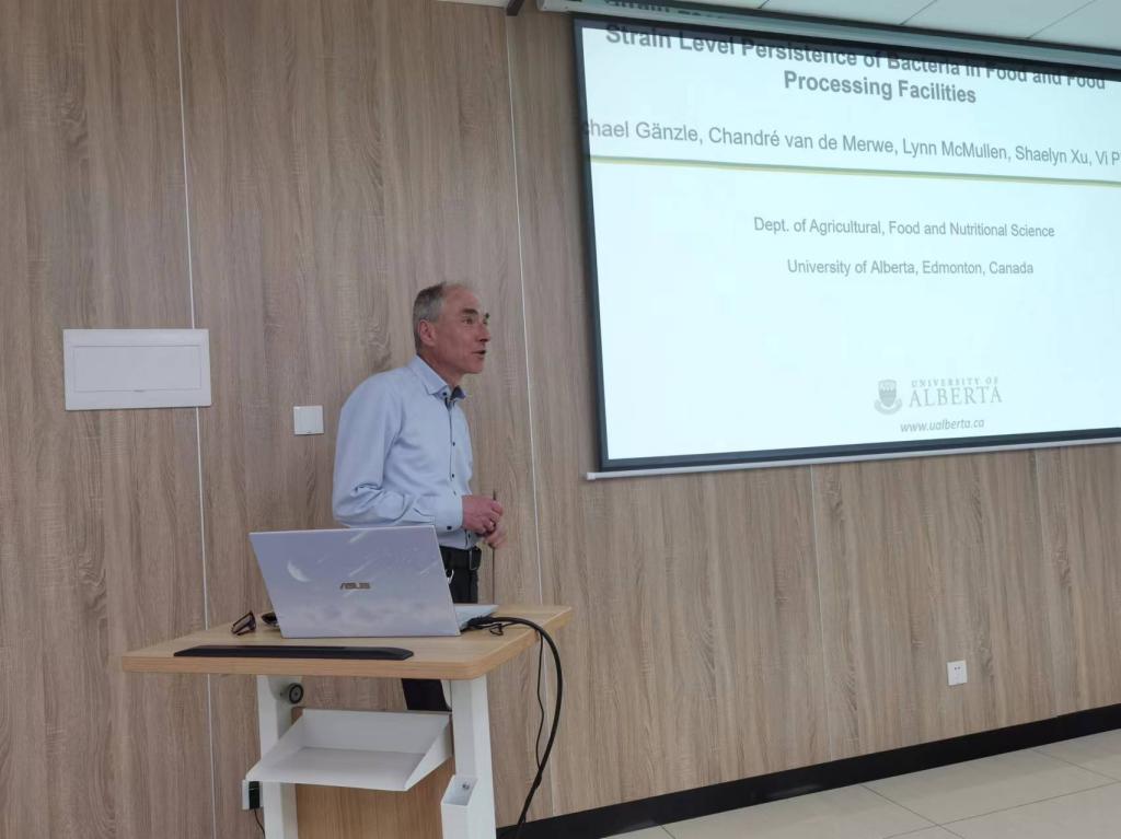 “Happy Hour”2024年度第9期学术交流会再农业微生物资源发掘与利用全国重点实验室D座C306会议室举行。受学院郑金水教授邀请,加拿大阿尔伯塔大学Michael Ganzle教授来校作了题为“Strain Level Persistence of Bacteria in Food and Food Processing Faciities”的专题报告。生命科学技术学院孙明教授、深圳市人民医院白云鹏博士及多学生参与交流。