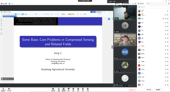 线上学术分享会,作题为“压缩感知及其相关领域中的几个基本核心问题”学术报告。学院40余名师生参加线上学术会议。