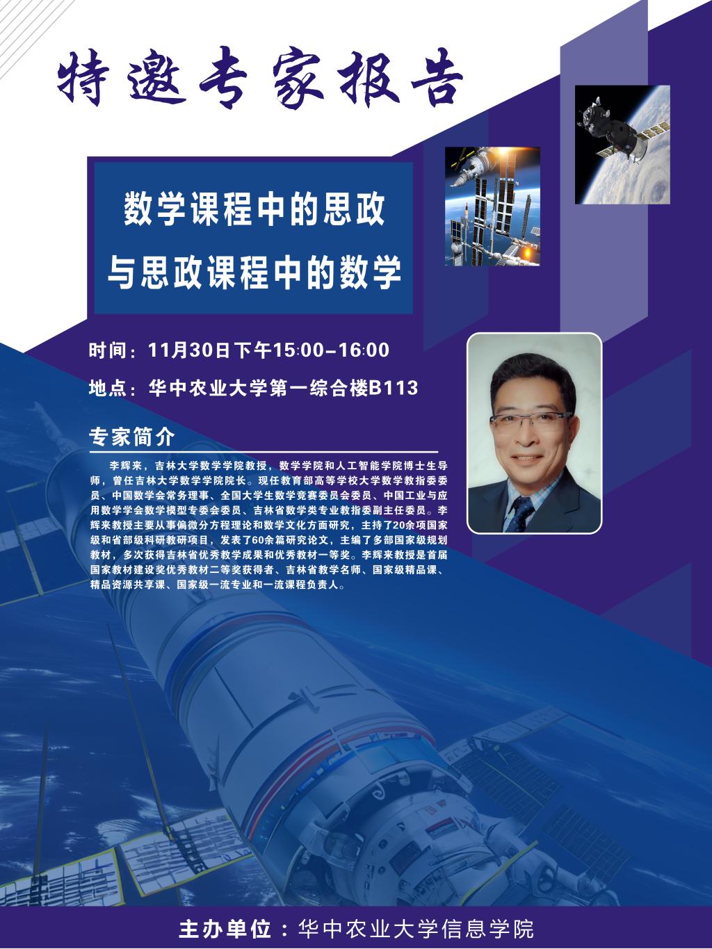 李辉来,吉林大学数学学院教授,数学学院和人工智能学院博士生导师,曾任吉林大学数学学院院长。现任教育部高等学校大学数学教指委委员、中国数学会常务理事、全国大学生数学竞赛委员会委员、中国工业与应用数学学会数学模型专委会委员、吉林省数学类专业教指委副主任委员。李辉来教授主要从事偏微分方程理论和数学文化方面研究,主持了20余项国家级和省部级科研教研项目,发表了60余篇研究论文,主编了多部国家级规划教材,多次获得吉林省优秀教学成果和优秀教材-等奖。李辉来教授是首届国家教材建设奖优秀教材二等奖获得者、吉林省教学名师、国家级精品课、精品资源共享课、国家级一流专业和一流课程负责人。