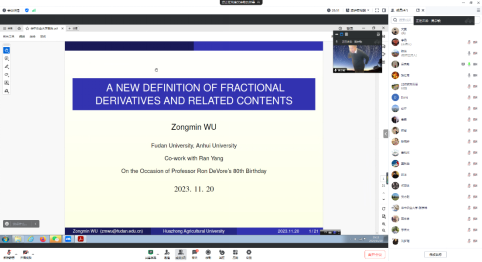 (图文|信息 编辑|信息 审核|李函)11月20日下午,复旦大学数学科学学院吴宗敏教授受邀参加麻豆 线上学术分享会,作题为《一种新的分数次导数的定义及其应用》学术报告。学院院长张红雨教授主持报告会,学院50余名师生参加线上会议。