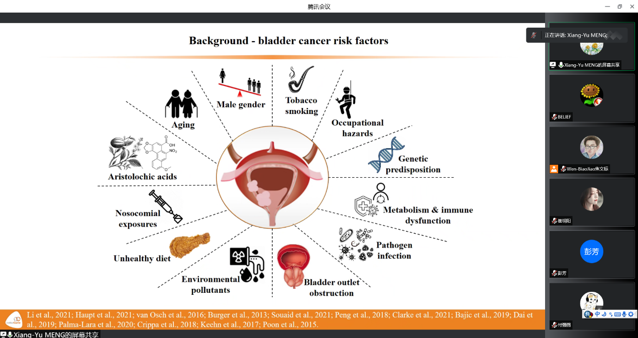 邀请,孟详喻博士做了题为“Molecular biology and etiology of bladder cancer: APOBEC, tobacco, and genetic variability”的学术报告。孟博士主要研究方向为通过基因组学、单细胞测序等组学研究手段探究肿瘤的发生、异质性和演化的分子机制,以及开发基于液体活检的肿瘤无创检测方法。会议吸引了学院众多老师和同学的参与。