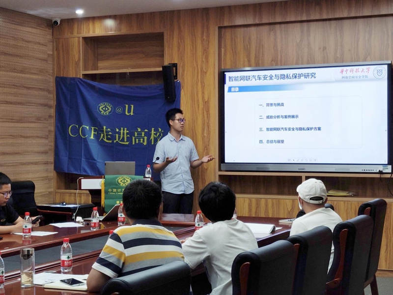 鲁赵骏博士以“智能网联汽车安全与隐私保护研究”为题,介绍了现代汽车在朝着智能化、网联化方向发展,在不断提升驾驶体验的同时面临的严峻安全形势,攻击者可以通过蓝牙、Wi-Fi等通信接口入侵车内网络空间,或者通过扰乱传感器系统使汽车做出错误判断,对驾驶员和乘客的生命财产安全造成严重威胁。鲁赵骏介绍了其团队在智能网联汽车安全与隐私领域的相关工作,并探讨了未来完全自动驾驶汽车安全和隐私保护方案等前沿研究方向。