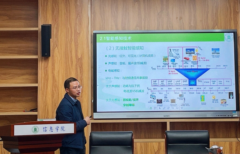 报告结束,参会师生与朱容波教授开始了深入研讨。张红雨教授对这些前沿的高科技、黑科技十分关注,与朱容波教授探讨了如何在农业方向实现深入应用。李国亮教授就环境监测应用的细节与朱容波教授进行了讨论。对感知技术的应用颇为感兴趣的李立教授与朱容波进行了积极交流。交流中大家站在新的视角看待问题,收获颇丰,会议在热烈愉悦的交流氛围中落幕。