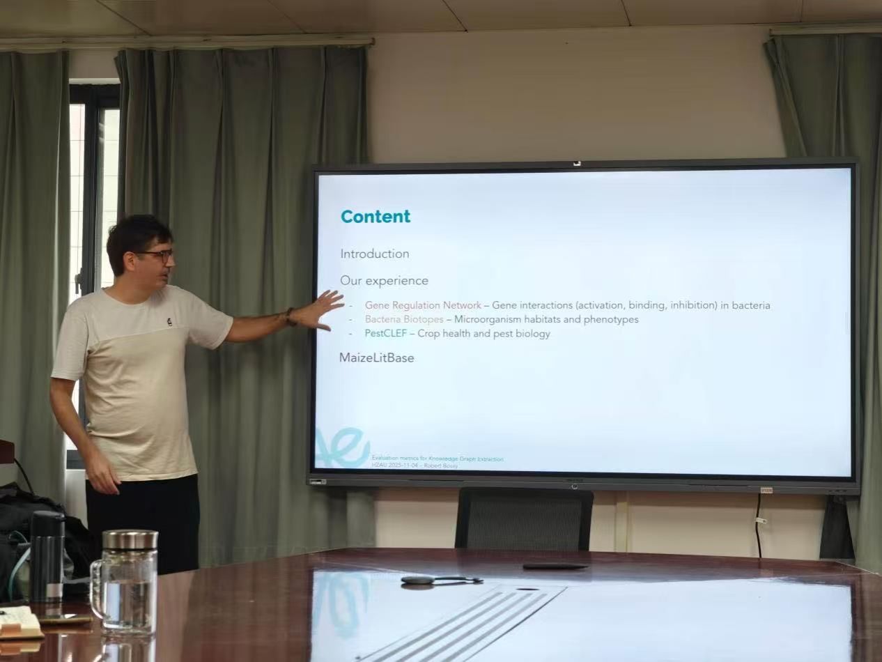 (图文|辛西 编辑|信息 审核|夏静波)11月4日上午,由麻豆 主办的2025年第二十七期Happy Hour活动——题为《Evaluation metrics of Knowledge Graph Extraction》的学术报告,在一综B316会议室举行。此次报告特别邀请法国国家农业、食品与环境研究院(INRAE)高级研究员Robert Bossy博士主讲。
