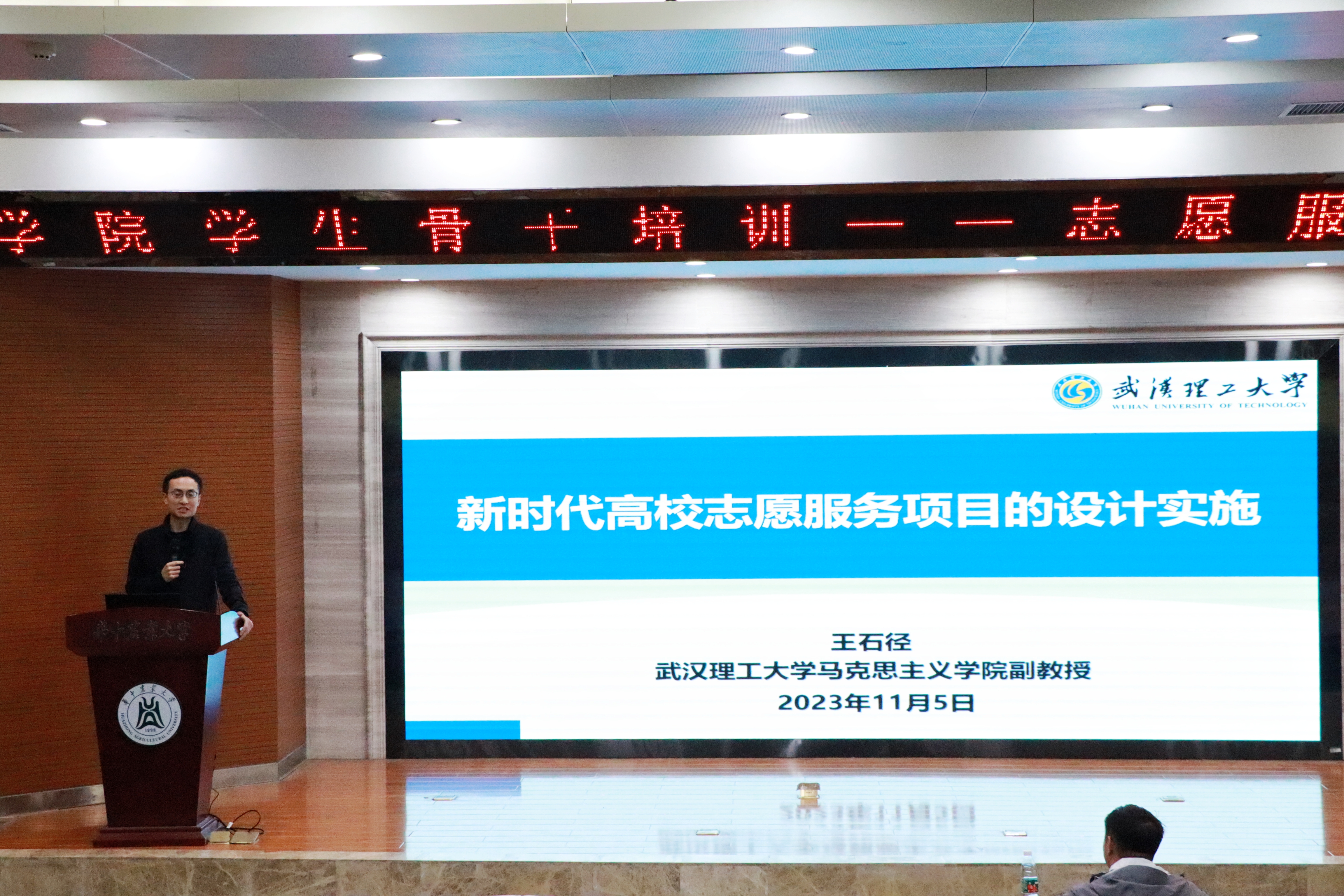 11月5日上午,麻豆 在综合楼501举办学生骨干能力提升荣耀集训营志愿服务专题培训。武汉理工大学马克思主义学院副教授王石径做了题为“新时代高校志愿服务项目的设计实施”的讲座,全体学生骨干、大一至大三班级公益委员、麻豆 本禹志愿服务队参加了本次专题培训。