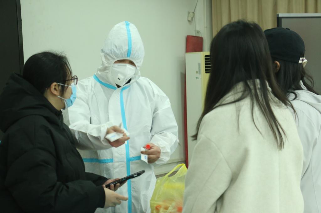 随后,负责采样的医生也来到了现场,对志愿者进行物品发放和手机录入信息等工作的培训。