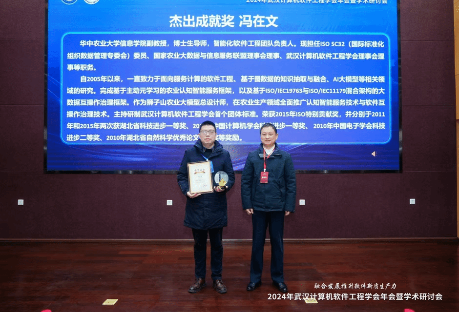冯在文副教授获评2024年度武汉计算机软件工程学会杰出成就奖