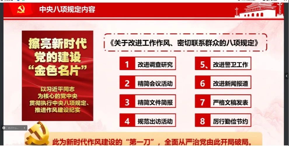 会议中,宣讲团王敏同学系统梳理了中央八项规定出台的背景、核心要义及实施十年来的显著成效,结合典型案例深刻阐释了“常抓不懈、久久为功”的纪律要求,强调作风建设永远在路上的政治定位。通过剖析违反八项规定的“四风”问题新表现,特别是公款吃喝、形式主义等隐形变异现象,以案为鉴、以案明纪,进一步强化了全体党员“越往后执纪越严”的政治意识。