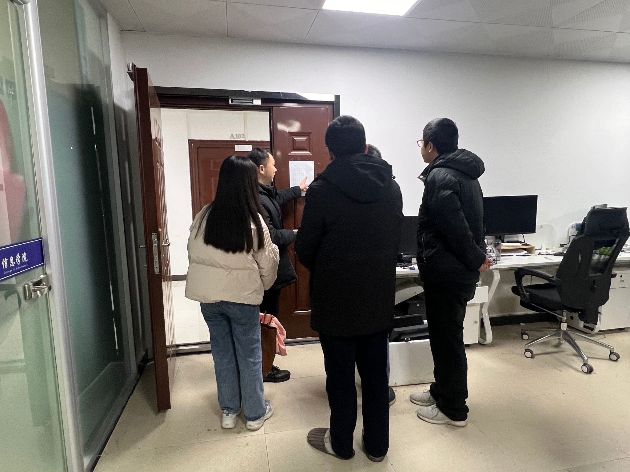 (文|王立金 图|李博 编辑|信息 审核|徐勋光)1月17日下午,学院党政领导刘进、徐勋光和实验教学常务副中心主任黄钰分头带队,开展了对第一综合楼B座、博物馆1楼和逸夫楼C座科研办公区域、研究生自习室、实验室等的“拉网式”安全大检查。