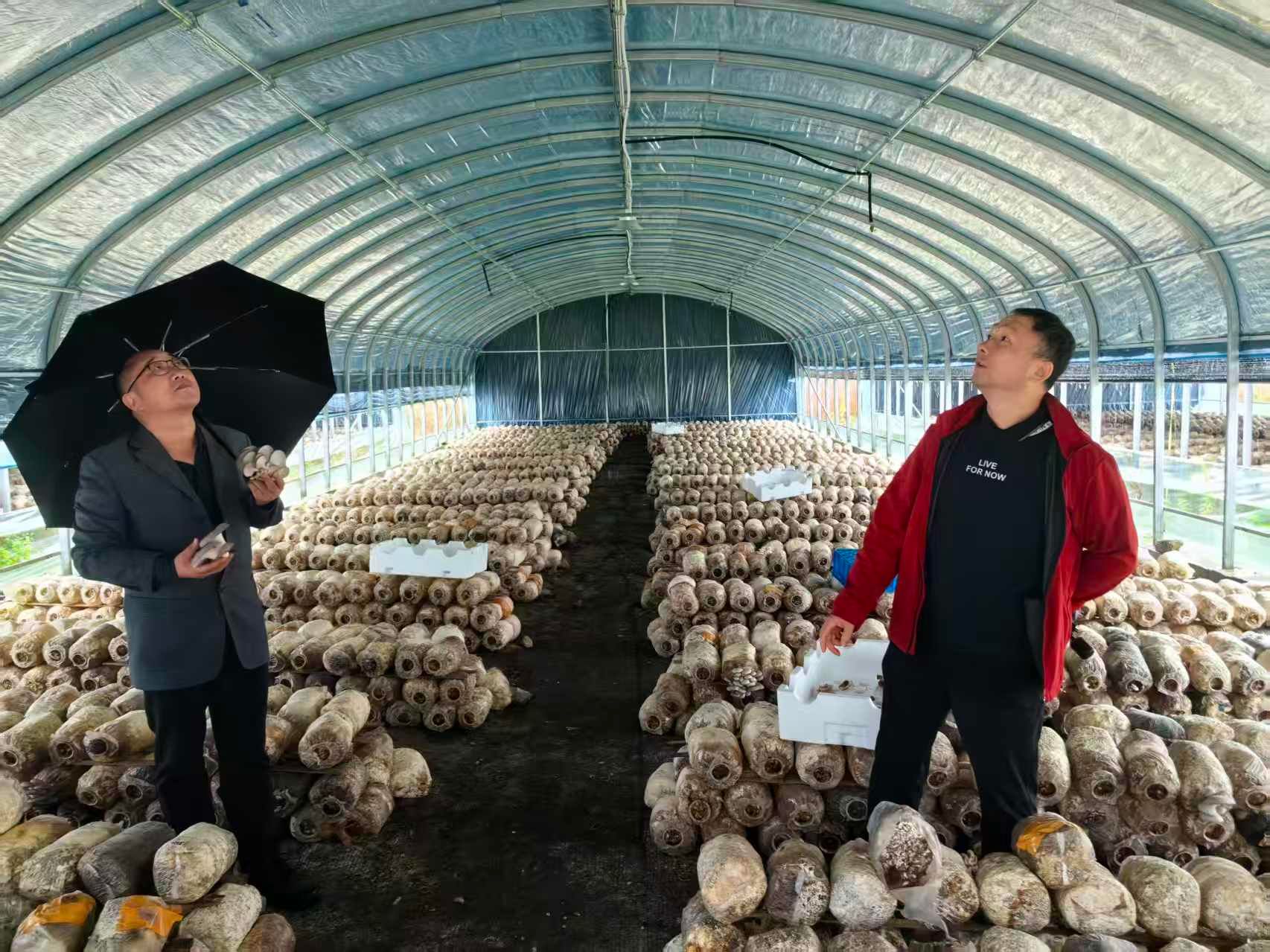 徐勋光一行参观了鼓乡风储电站、潘家湾水库、伍家淌食用菌种植基地等,并围绕“产业助力乡村振兴”组织了座谈会。座谈会上,村支书孙玉华介绍了封竹淌村基本情况、产业现状、发展规划和面临问题,并提出四点需求,包括:食用菌品种单一,目前仅有平菇,种植技术有待提高;村有林场日本落叶松线虫病的防治技术;建立村有林权信息库,以便及时掌握森林、林木、林地状况;魔芋病虫害的防治及深加工技术等。