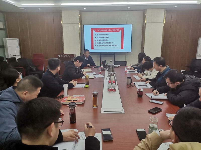 副院长李国亮教授首先领学了中央一号文件精神研学体会。他谈到,这是新世纪以来中央连续出台的第20个指导“三农”工作一号文件,强调了“三农”问题在中国社会主义现代化时期“重中之重”的地位,再次表明党中央加强“三农”工作的鲜明态度。随后,他从9个部分领学了相关举措,并结合学校、学院实际,就“强化农业科技和装备支撑”“推动乡村产业高质量发展”“扎实推进宜居宜业和美乡村建设”等3部分进行了重点阐释。李国亮表示,文件首次提出农业强国新内涵,首提“培育发展预制菜产业”,这无疑为农业科技教育工作者提出了新思路、新课题、新方向。乡村振兴是当前和今后一段时期“三农”工作的重要组成,所涉及的生物育种、数字化、农业农村大数据、智慧农业等领域均与学校、与麻豆 相关学科领域息息相关,我们要紧紧围绕中央部署要求,积极参与其中,发挥信息力量、提供信息方案,为全面乡村振兴服好务、育好人。