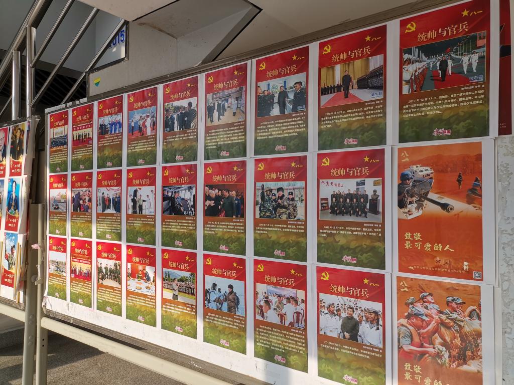 8月1日上午,学院1楼大厅公告栏,“统帅与官兵”主题图片展在此展出。