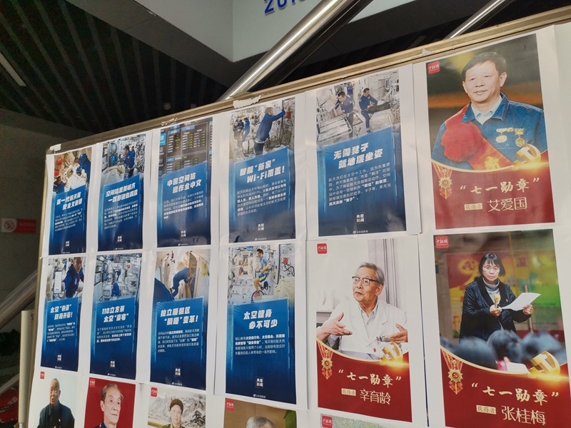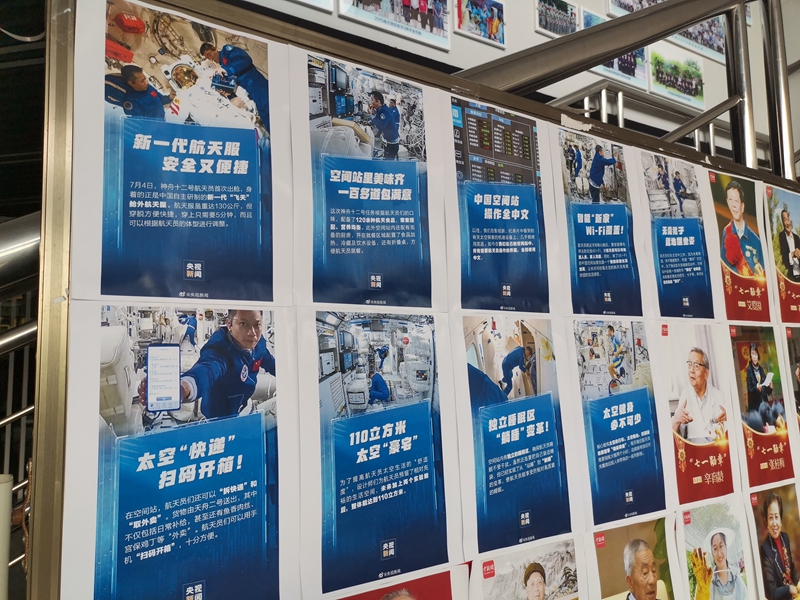 7月6日下午,“航天员在中国空间站内的日常”主题图片展在学院1楼大厅展出。