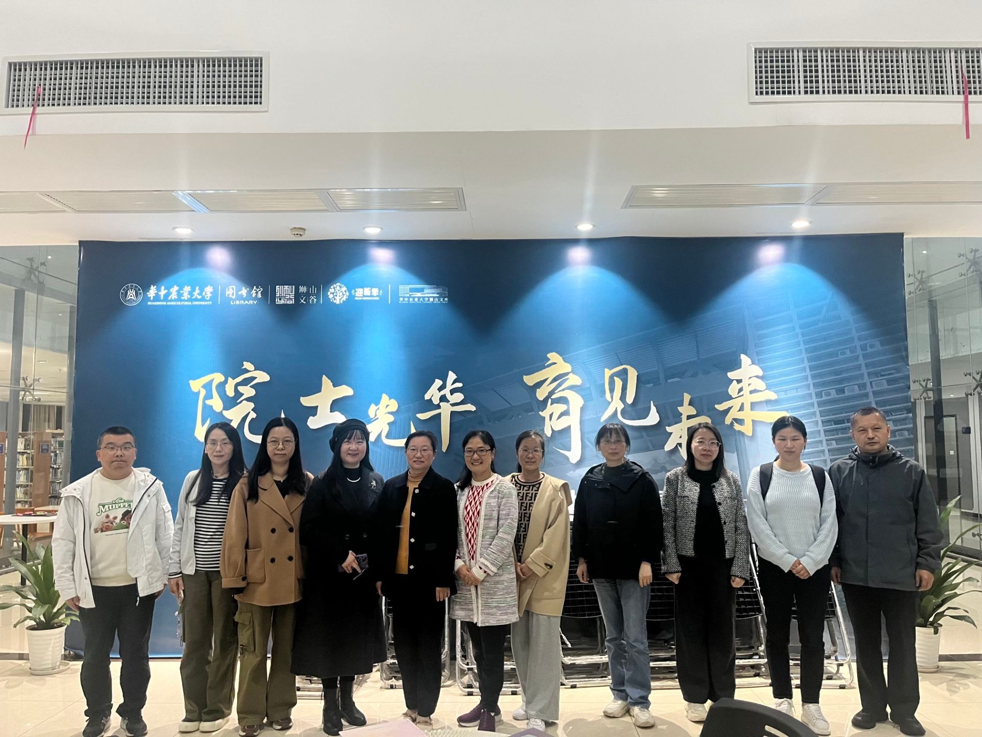 会后,部分党支部组织党员及教师集体参观了在图书馆5楼汇雅书邨举办的院士文献展。