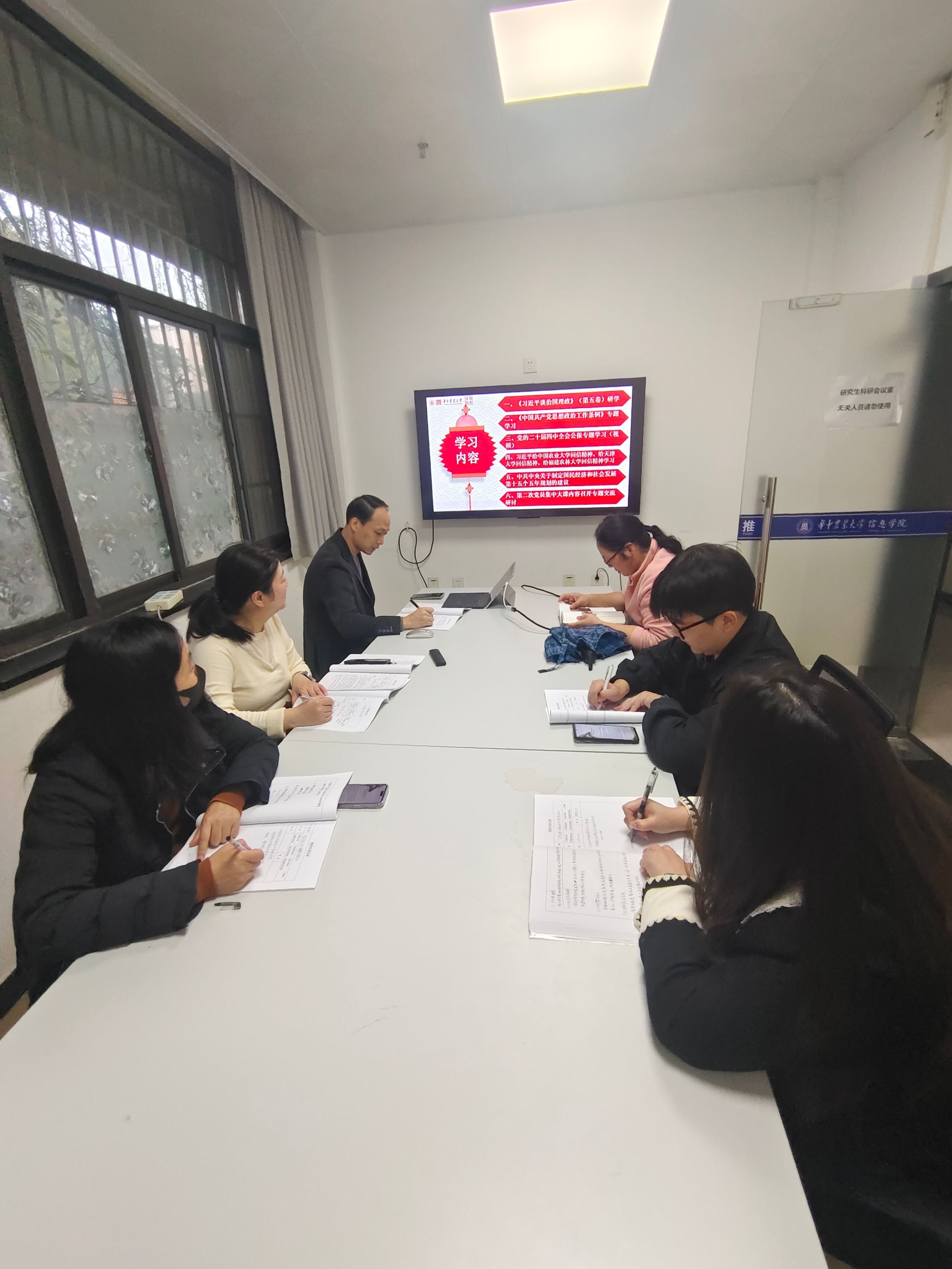 在各党支部书记或委员的带领下,各教工党支部深入开展了《习近平谈治国理政》第五卷重点篇目的学习研讨,部分党支部针对第十一部分的2篇文章:P339《保障粮食和重要农产品稳定安全供给》以及P346《以新安全格局保障新发展格局》,并结合参照刚公布的《中共中央关于制定国民经济和社会发展第十五个五年规划的建议》部分章节的内容,结合学科及专业实际,深入交流了心得体会。相关党支部就《中国共产党思想政治工作条例》、习近平给中国农业大学重要回信精神、给天津大学重要回信精神、给福建农林大学重要回信精神等部分内容开展了专题研学。