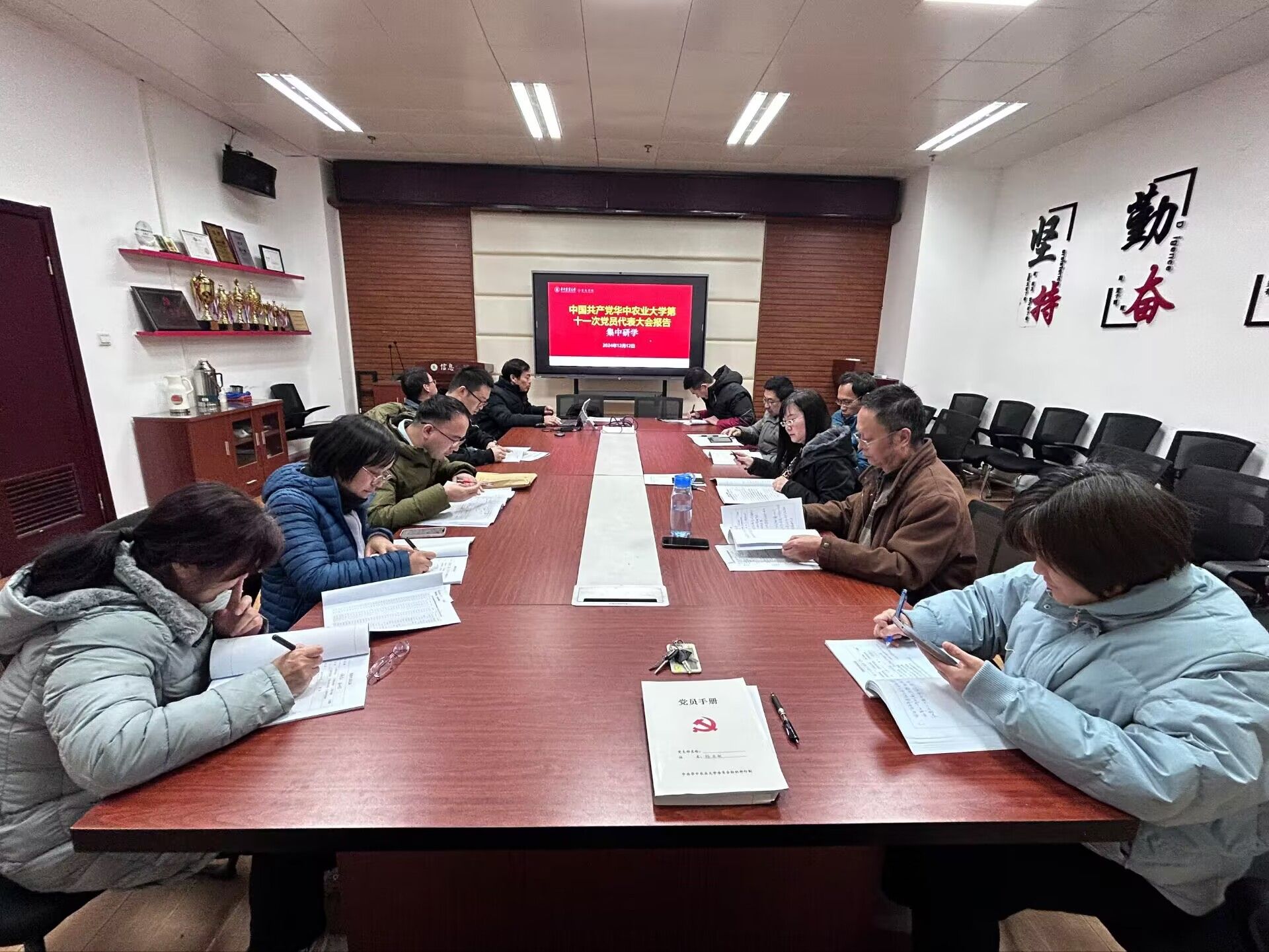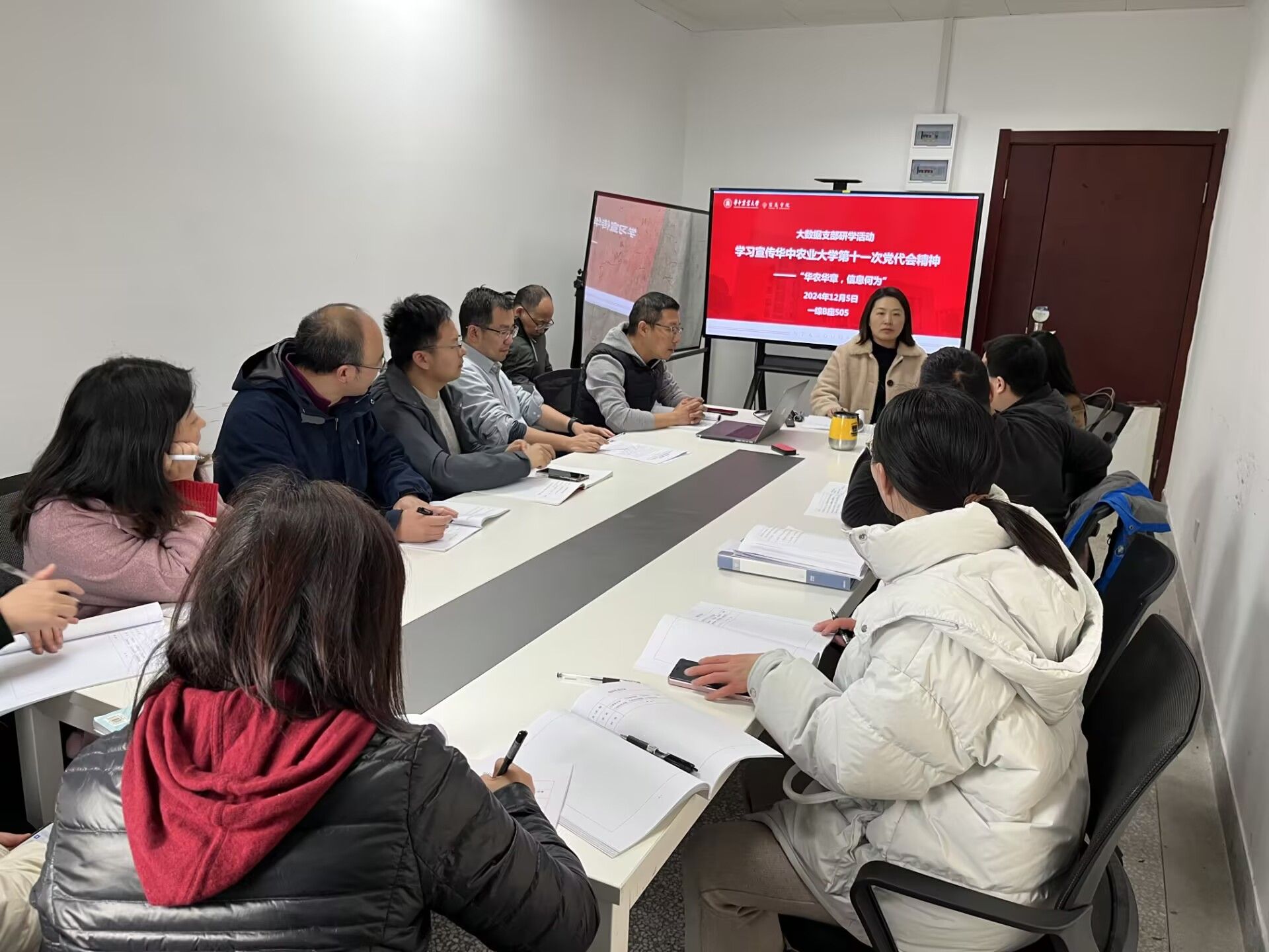 (图文|辛西 编辑|信息 审核|刘进)12月5日下午,“学习时间”。学院各教工党支部纷纷开展12月份主题党日活动,以各种形式学习贯彻落实学校第十一次党代会精神以及党的二十届三中全会精神。在支部书记(委员)带领下,各支部联合系部集中学习了党代会精神,围绕党代会报告中有关信息科技发展战略、数智化行动,以“华农华章,信息何为”为主题,进行了深入研讨交流。学院党政领导参加了联系支部(系部)活动,学院党代表参加了相关支部活动,并介绍了党代会盛况和参会感受,带头分享了学习党代会报告心得体会。学校派驻广州公司临时支部在刘峰带领下也集中研学了党代会报告。郑学刚、张红雨、李国亮、沈婧芳、章文、沙灜、龚静、陈洪等参加了相关支部(系部)学习活动。