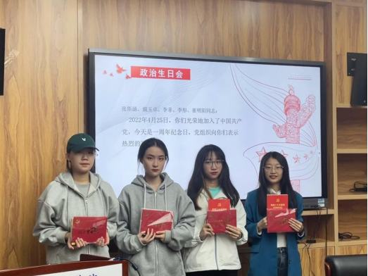 最后全体党员为五位党员开展了入党一周年的“政治生日会“纪念活动,全体党员一起重温了入党誓词,更加坚定了我们的入党初心。