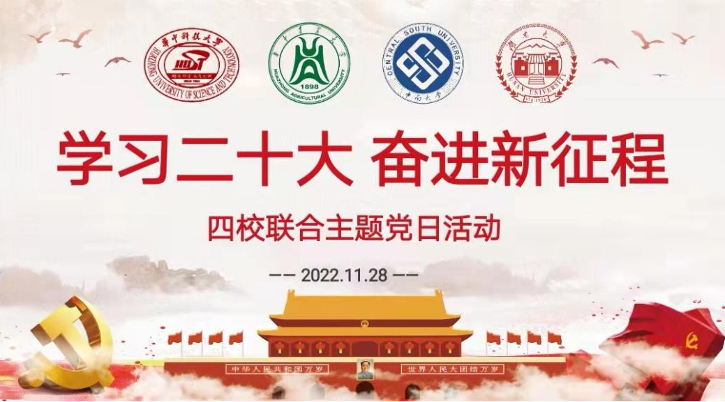11月28日晚,学院生物信息与医药研究生党支部全体成员通过腾讯会议线上参与了四校联合主题党日活动。主题党日活动以“学习二十大 奋进新征程”为主题,由我院联合湖南大学新闻与传播学院、华中科技大学公共管理学院、中南大学自动化学院共同开展。