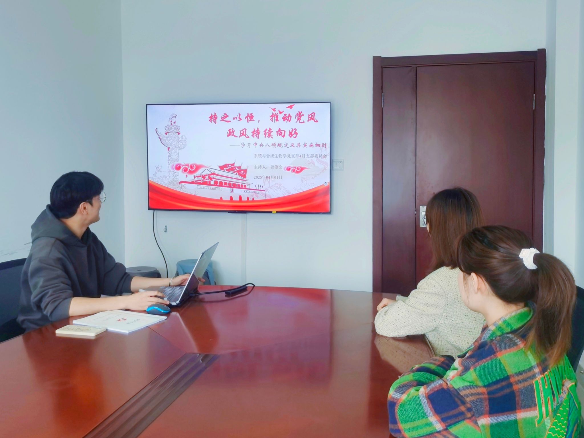 系统与合成生物学研究生党支部则结合专业特点,围绕中央八项规定精神展开深入讨论。支部书记贺俊文同志指出,学术研究和项目实践需要严谨务实的作风,研究生党员应杜绝弄虚作假、投机取巧的行为,将精力投入到技术创新和难题攻克中。支部组织委员刘艺同志表示,在组织支部活动时,将精简流程,避免冗长繁琐的会议形式,把更多时间留给学术讨论和经验分享。