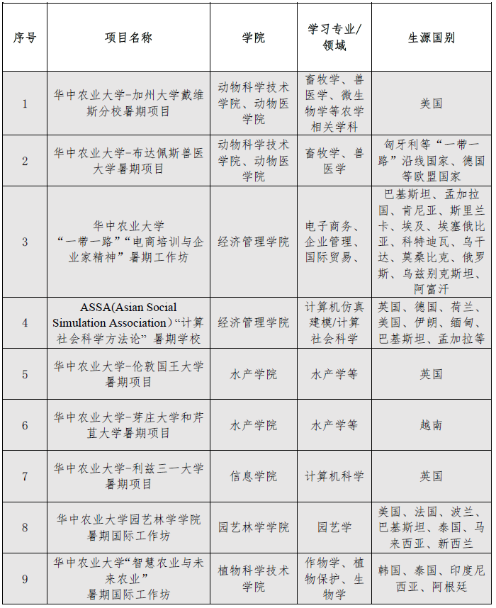 项目分别由植物科学技术学院,动物科学技术学院、动物医学院,园艺林学学院,经济管理学院,水产学院、麻豆