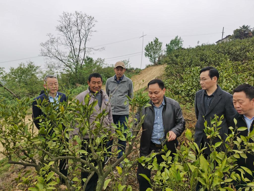 服务乡村振兴示范点”授牌仪式在龙山镇石桥沟村举行,廖济忠向龙山镇负责人进行了授牌。仪式结束,廖济忠一行赴该村柑橘种植基地考察,刘继红、郭大勇现场指导果农如何进行柑橘病虫害防治、修剪、水肥管理等,并对标准化橘园建设提出建议。下午,廖济忠一行赴土关垭镇土关垭村茶叶基地考察,该镇负责人现场汇报了土关垭镇及土关垭村茶产业发展情况。