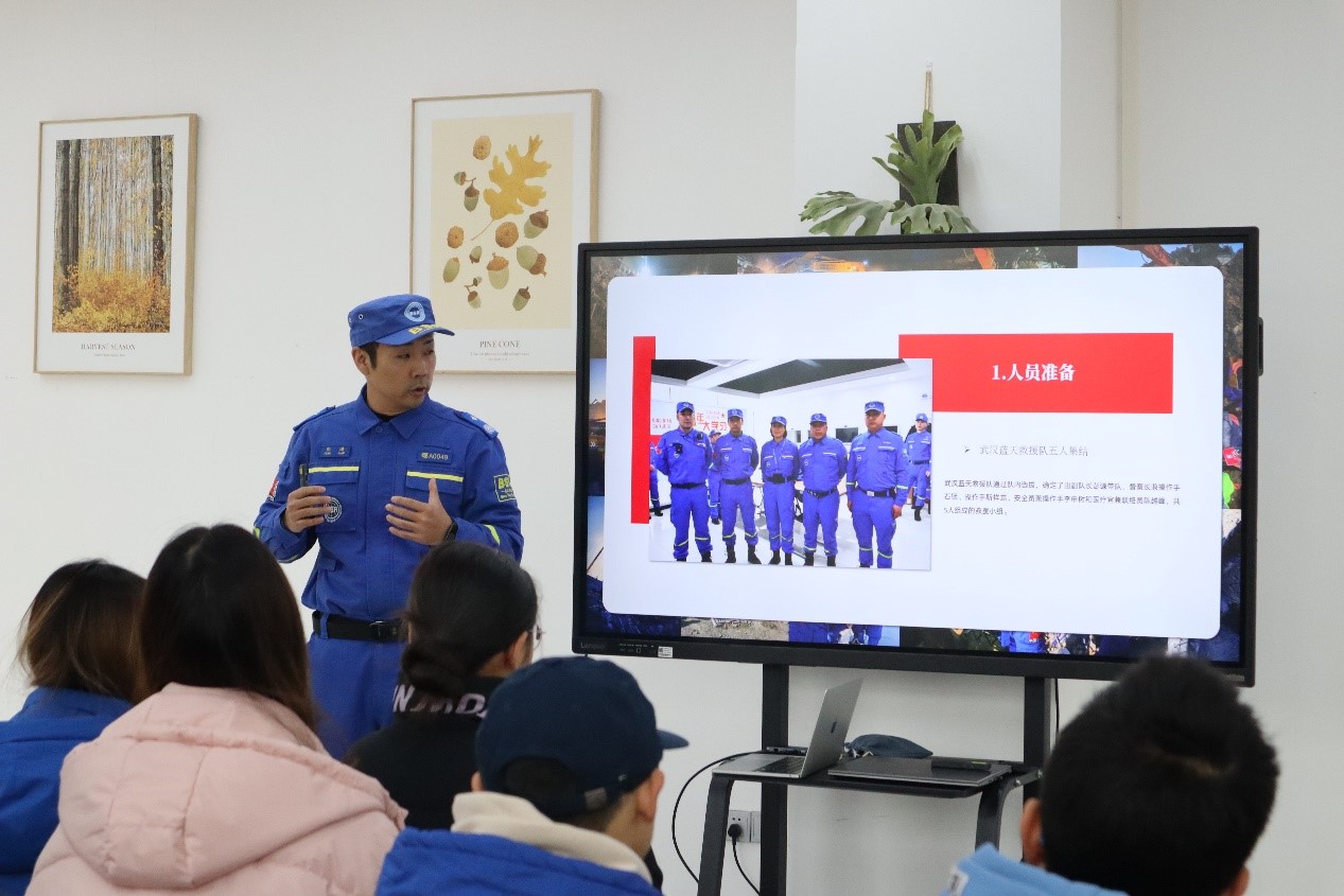 图2 武汉蓝天救援队医疗组组长曹阳向大家介绍队伍职责