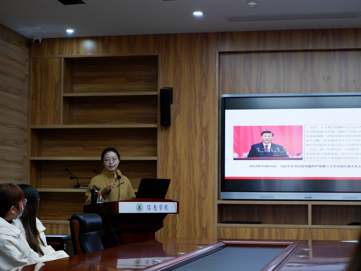 大学生党总支在逸夫楼c603组织本科生各党支部开展党的二十大精神“精读精讲”专题学习,学校党的二十大精神“精读精讲”宣讲团成员、马克思主义学院胡小娱老师受邀作辅导报告,麻豆