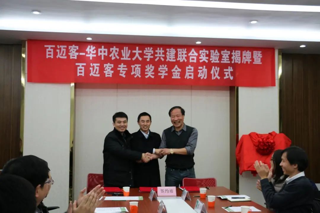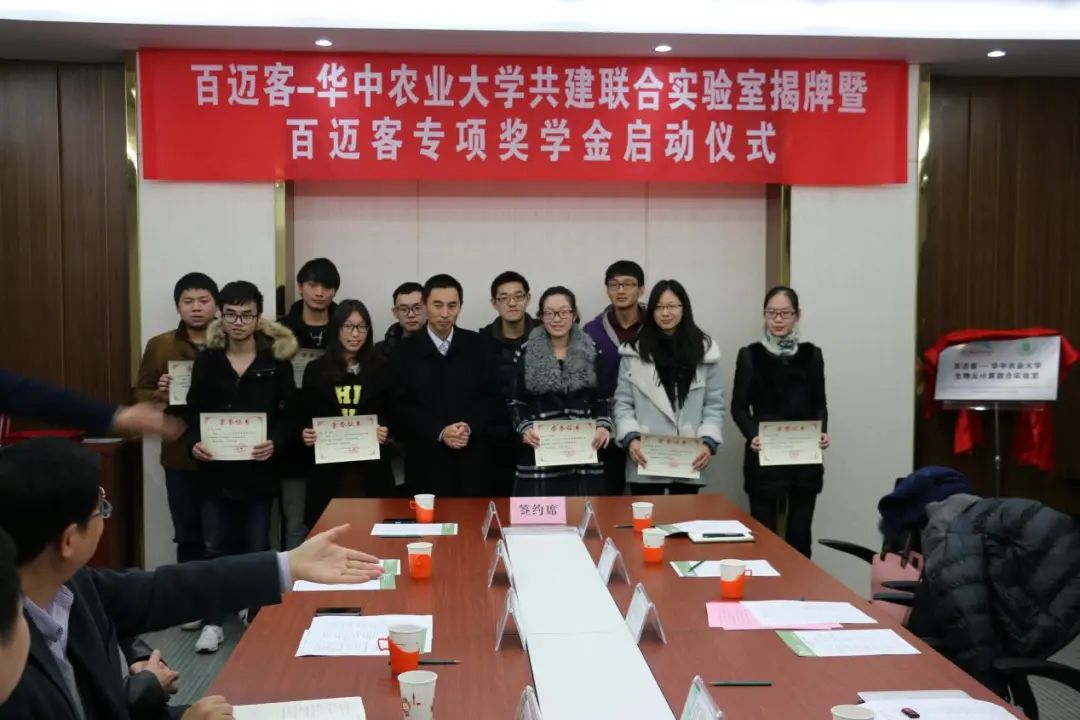 12月1日下午2:30,百迈客-华农共建联合实验室揭牌暨百迈客奖学金启动仪式在麻豆 麻豆 会议室举行: